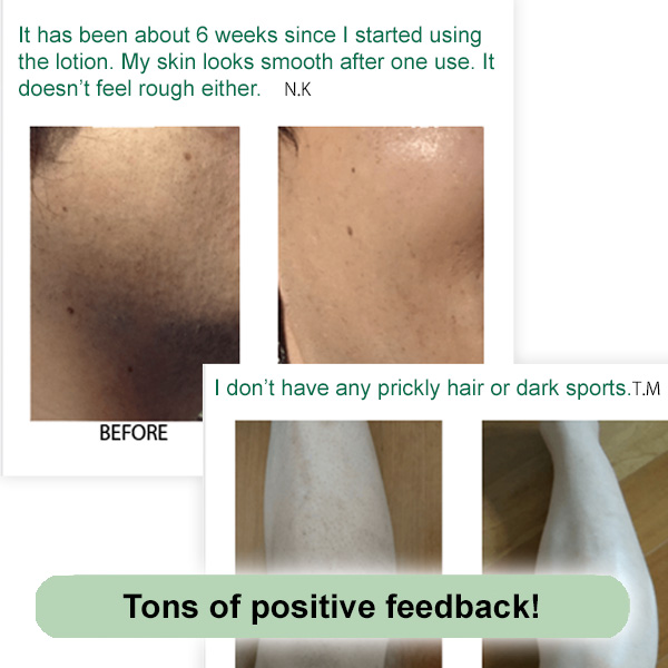 Please apply once a day after bathing on clean skin. It is easier for the lotion to penetrate when applied on skin free of clogged pores and sebum. Please apply multiple coats on areas that concern you. Also, by periodically taking care of unwanted hairs, the lotion will reach the skin in depth (stratum corneum) and work firmly on unwanted hairs.