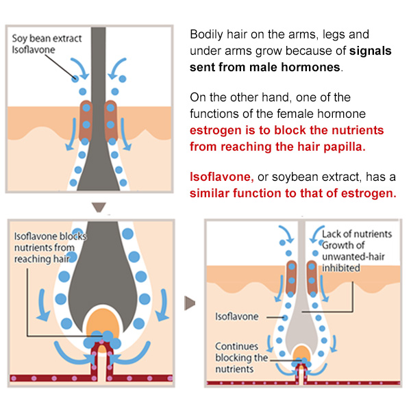 The 2 high-purity isoflavone and pomegranate extract derived from soy bean and iris contained in the Pineapple and Soy Milk Lotion series works on unwanted hair while leading to a feminine skin giving it a dewy and smooth texture.